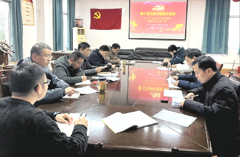 1月10日上午,电气学院教工党支部在自控大楼四楼会议室开展2022年第一次主题党日活动,本次活动主题为“学习六中全会精神,做好代表选举工作”。活动由党支部书记杨青胜同志主持,全体教工党员参会。