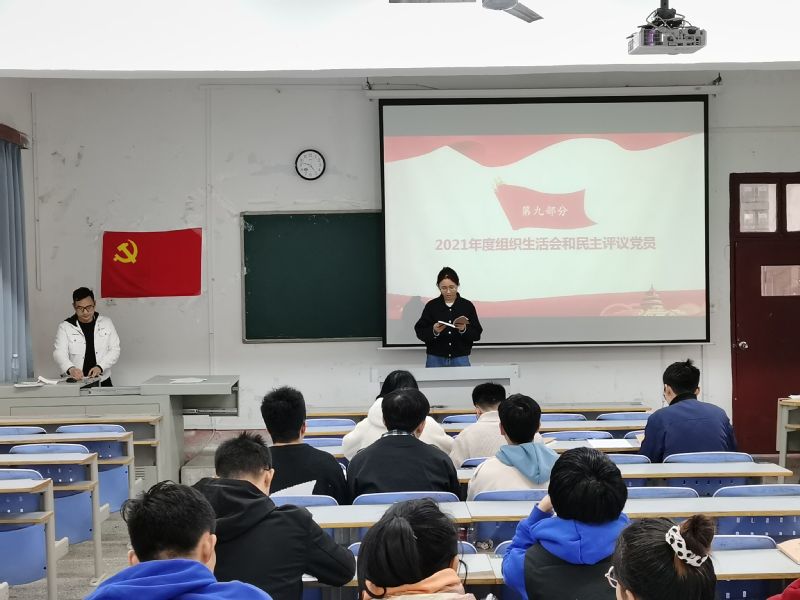 在完成缴纳党费、重温入党誓词、诵读党章等环节后,支部书记带头讲党课,其中三支部黄新望同志以“学习两会精神”为主题讲解微党课,带领全体党员学习两会精神并解读今年政府工作预期目标、重点工作,呼吁大家紧跟党和国家的脚步、积极参与社会主义现代化建设。郑文栋同志谈自身体会时讲到,当代大学生要关注国家、社会的时事热点,学习党的有关思想并紧密团结在党的周围。随后全体党员学习了习近平在中共中央政治局第三十七次集体学习上的讲话等重要讲话精神、2022年全国教育工作会议和工作重点,并现场进行了信教排查工作。最后,三个支部依托本次主题党日活动开展了2021年度组织生活会和民主评议党员工作,支部书记作述职报告后,全体党员同志依次上台发言进行批评与自我批评,并评议选出优秀党员。