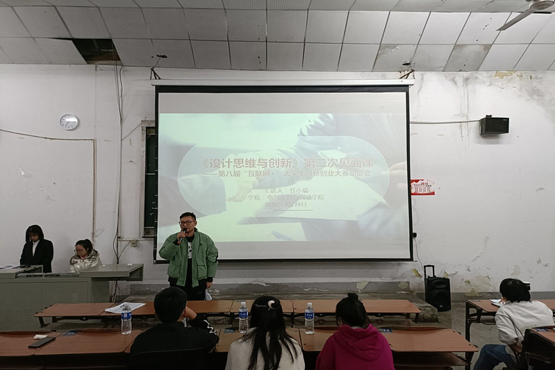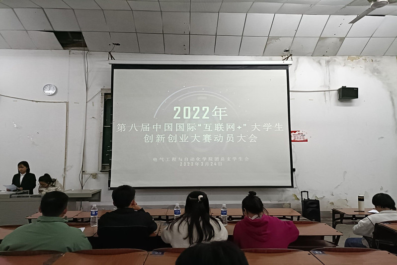 为深入贯彻习近平总书记给中国“互联网+”大学生创新创业大赛“青年红色筑梦之旅”大学生的重要回信精神,促进同学们深入了解“互联网+”大学生创新创业大赛。324日晚7点,电气学院于自控大楼2J11举办了本次“互联网+”大学生创新创业大赛动员大会。出席本次大会的有电气学院辅导员任小聪,团总支副书记胡倩男,第七届“互联网+”大赛校级银奖项目负责人胡赏,校级铜奖项目负责人余陈赫以及21级全体学生。