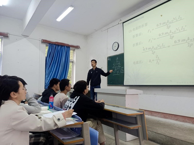 课堂上,刘晨老师讲解了三相异步电动机的运行分析,着重在等效电路的频率折算上进行推演与讲解实例,刘老师的授课过程精神饱满、声音洪亮、重点突出、知识点详细。朱军老师讲解了复数的概念与四则运算,朱老师的讲课幽默、风趣且融入了课程思政。课程结束后,全体教师对课程的板书过程推演、学生的互动、课程网络信息资源的利用、课程思政的融入等方面进行了热烈的讨论。