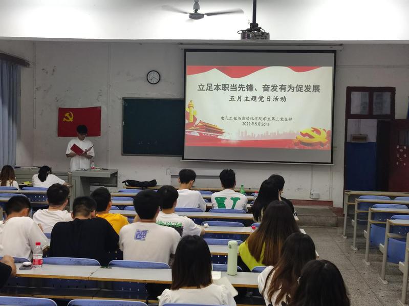 为深入学习贯彻习近平新时代中国特色社会主义思想,进一步推进学院党建工作,2022年5月26日晚上19时,william英国中文三个学生党支部分别在自控大楼2202、2205和2302开展了以“立足本职当先锋,奋发有为促发展”为主题的党日活动,全体学生党员参加了此次活动。