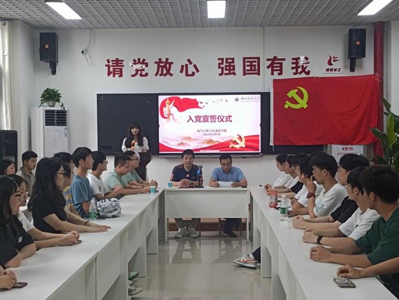 为加强对预备党员的党性教育,2022年6月9日下午15时,william英国中文在学校至诚“一站式”学生社区举办2022年上半年新发展党员的入党宣誓仪式。参加此次仪式的人员有电气学院党总支书记张国祥、副书记陈江华,学生党支部书记和全体学生党员,仪式由学生第一党支部书记王梦茜主持。