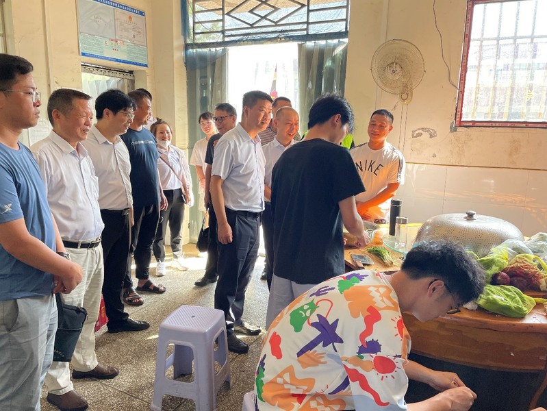 马书记一行人到达屋边小学后首先进入教室,观看课堂教学情况并为每一名小学生发放了文具大礼包,马书记鼓励小朋友们好好学习,长大了要像哥哥姐姐们一样为祖国建设贡献力量。随后了解志愿者 的后勤保障情况,参观了厨房、寝室等生活环境,询问同学们日常的工作和饮食条件,与志愿者进行亲切交谈。在听取团队负责人的的汇报后,马书记高度赞扬了同学们走进乡村、深入人民开展社会实践活动的行为,希望大家通过“三下乡”活动增强社会责任感、提升干事创业的能力,他着重强调了安全问题,告诉同学们遇到困难及时向学校反应。同学们纷纷表示,通过本次实践活动得到了锻炼和成长,未来将不断提升自身综合素质,争做社会主义的合格建设者。