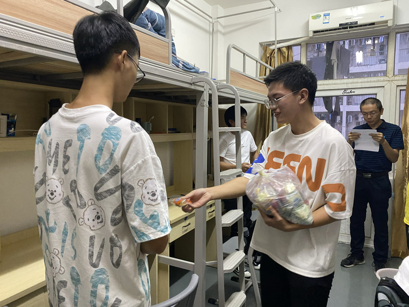 本次下寝活动分别以班主任(导师)寄语以及分发中秋月饼为主,走访了学舍19栋、学舍10栋、学舍12栋、学舍26栋。活动当天18时30分,学院老师、学班一齐在19栋门口集合,并合影留恋。本次活动,各班班主任以及学班分别按照寝室分布表前往寝室所在楼层,到达寝室,班主任先进行寝室点名,确保已报道学生均已入住,并与每个学生进行亲切的沟通交流,在交流中重点关注学生的学习生活中是否有需要帮助的地方。同时针对家庭困难的学生提供了能缓解经济压力的几个途径,帮扶他们顺利入学安心就读。期间,学班们将学院事先准备好的月饼发到每个同学的手上,同学们表示欣喜。最后班主任鼓励同学们在大学努力学习,积极进取,同学们耐心聆听,针对部分问题进行了提问,并得到了有效回复。