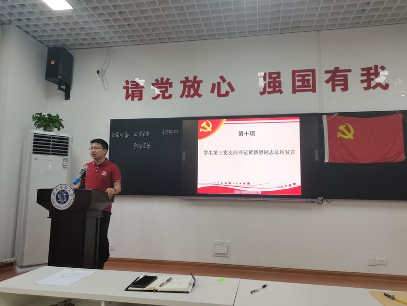 接下来,各支部的优秀党员代表上台发言,并向党组织表态。其中,学生第一党支部的李俊同志承诺在以后的学习和工作中将以党员的标准严格要求自己,践行共产党员的初心和使命,并积极履行党员的责任和义务。