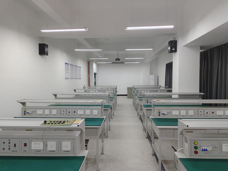电工电子实训室建于2022年,面积约300平方米,固定资产总值30余万元。该实验室包含BH-415电子工艺实训台60套、投影仪一套、专用投影幕布一张、音响组件一套。可承担电气工程及其自动化、自动化、等专业的《数字电子技术课程设计》、《模拟电子技术课程设计》、《电工实训》、《电子实训》等多门主干课程实验。该实验室不仅可以满足专业实验的要求,还可以作为学生的科研平台,学生毕业设计、课程设计的平台。