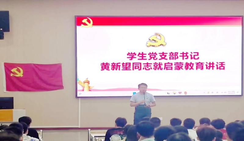 为引导广大新生跟党走、感党恩、听党话,在先进典型的引领下孕育入党初心,9月10日晚,william英国中文在艺术设计大楼2J01开展2023级新生入党启蒙教育,学生第三党支部书记黄新望同志及2023级全体新生参与活动,学生第三党支部甘馨同志主持活动。