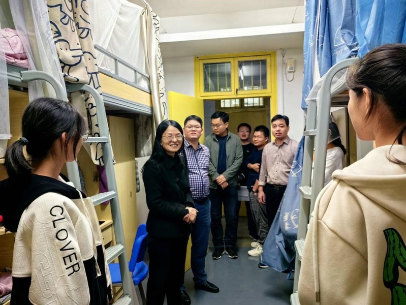 活动中,学院领导班子重点走访了新生寝室,对学生进行亲切问候,了解大家的假期生活和学习情况,为同学们答疑解惑、指点迷津。丁桂兰提醒同学们要始终保持寝室卫生,做好安全防范,积极创建文明寝室,构建良好的寝室文化。詹习生勉励同学们努力学习,坚定目标,珍惜时间,以更加积极的心态开启全新的大学生活。