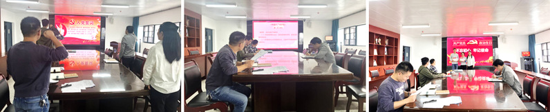 活动中,支部党员交纳了党费,肖波同志带领大家重温入党誓词,吴博同志带领大家集体诵读党章,支部组织委员肖波同志代表教师党支部为刘晨、何苗两位同志赠送“政治生日”贺卡并合影留念。