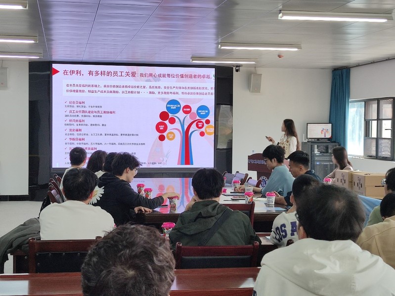 宣讲伊始,湖北黄冈伊利乳业有限公司倪专员通过播放暖场视频和企业介绍视频,通过有奖提问等方式让学生了解企业,增进了亲近感。随后,该经理从企业文化、企业地位、公司优势、人才培养、就业地点等方面进行进一步的讲解,通过与学生互动提问,知识竞答等形式逐步拉进与学生关系。最后介绍了生活环境,食宿管理制度等企业情况并就大家关心的薪资待遇、福利保障和企业需求等方面重点进行介绍。