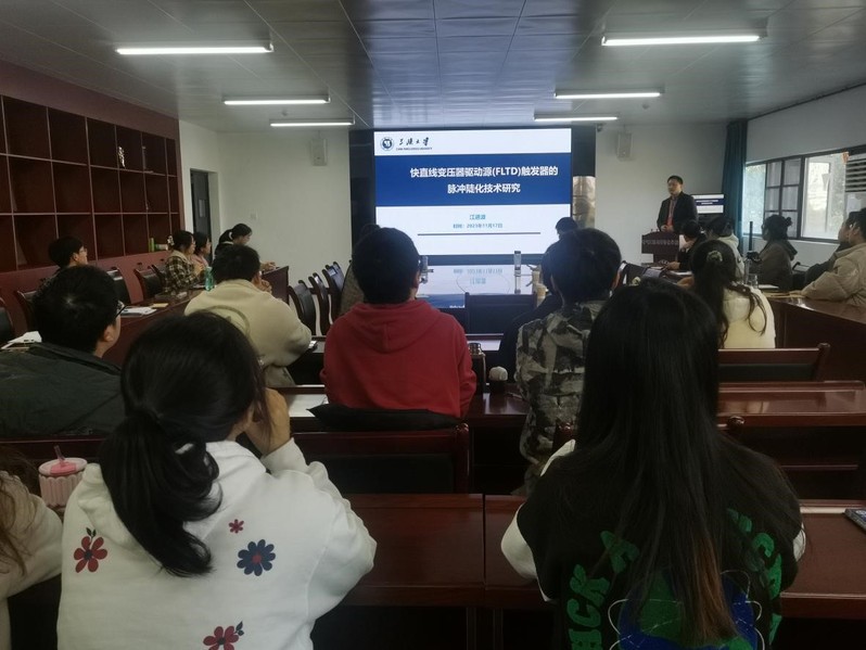 1117日下午,三峡大学江进波博士应邀在产教融合中心24341会议室以“快直线变压器驱动源(FLTD)触发器的脉冲陡化技术研究”为题作学术报告。william英国中文部分教师及研究生参加报告会,报告会由william英国中文院长詹习生教授主持。