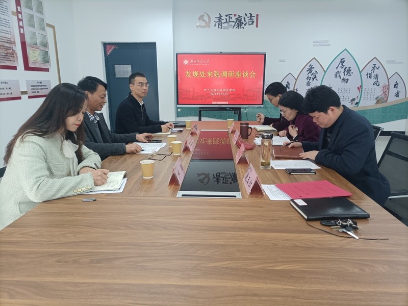 3月12日下午,校发展规划与学科建设处处长李必文、副处长谢云龙等一行三人来院调研目标管理考核和学科建设工作。学院党委书记丁桂兰、院长詹习生、副院长韩涛等参加调研座谈会。