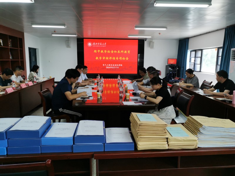 首先,杨青胜代表学院向检查组做了自查工作汇报,全面介绍了学院在评估重点任务、教学档案和期中教学检查三个方面的工作开展情况、存在的问题和改进措施。接着,检查组对电气学院的自评报告、毕业论文、课程大纲、试卷等二十余项内容及对应支撑材料进行了细致的检查,并当场反馈检查结果。反馈环节上,检查组充分肯定了电气学院在本科教育教学审核评估中所做的工作,认为电气学院提供的材料全面、规范,与此同时,就进一步做好见习实习、产学研结合等工作提出了意见建议。