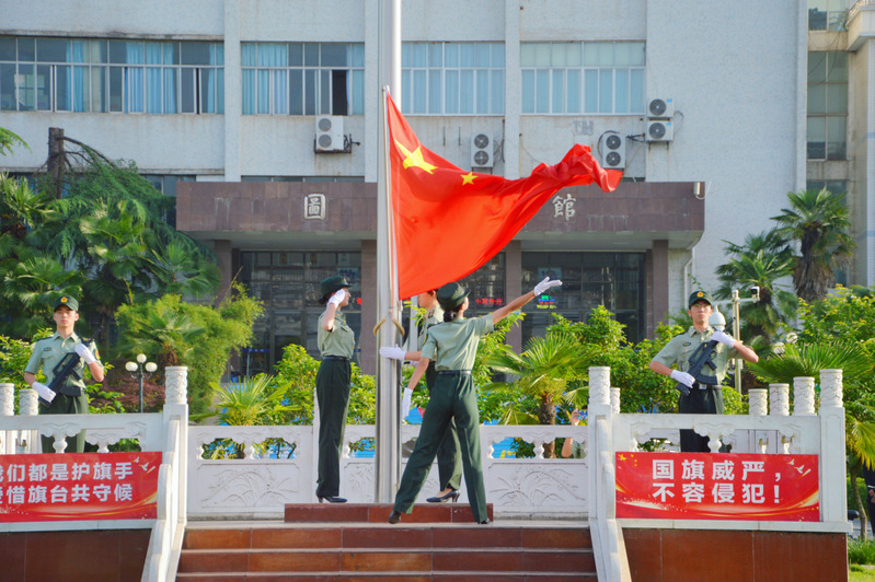 6时50分,国旗班昂首阔步,动作整齐划一,护送国旗入场。庄严的国歌奏起,五星红旗缓缓上升,迎风飘扬,全体师生肃立注目。