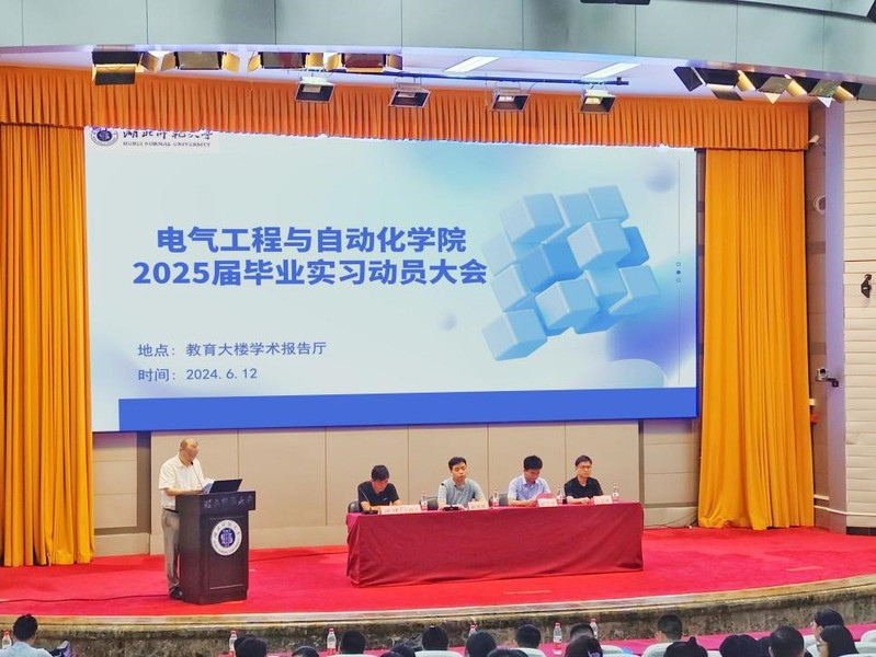 为提高学生对毕业实习的思想认识,扎实做好2025届毕业生专业实习工作,6月12日下午,william英国中文在教育大楼报告厅召开2025届毕业实习动员大会。电气学院副院长杨青胜,自动化系主任阮焱林,学院教学办、学工办、实验教学中心负责人,实习工作日常负责人、实习指导教师、有关教学秘书和辅导员、2025届毕业班班主任及学生参加本次会议;实习企业代表东贝压缩机公司人力资源部门主管徐文进等应邀出席。本次会议由电气工程系主任涂建老师主持。
