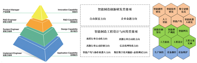 竞赛赛项分为“智能制造创新研发类”与“智能制造工程设计与应用类”两大类别,同时在制造业转型升级热点、难点方向筹建相关赛项。