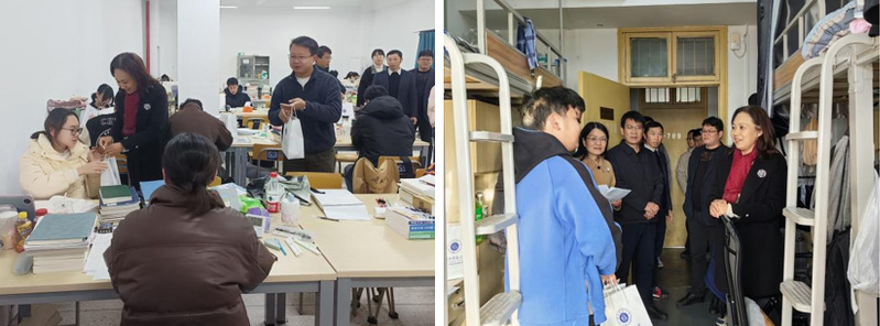 随后,陆咏梅又来到学舍19栋,与马尚等同学交心谈心,询问大家的学习、生活情况。她叮嘱大家,要注意冬季消防安全,切勿使用违规电器、乱拉乱拉电线、乱扔烟头、存放易燃物品;要注意校内交通安全,遵守电动自行车骑行规定;要注意防范网络诈骗,不点击不明链接、不给陌生人汇款;要团结友爱,认真学习,做好期末备考,有问题及时找学院领导、辅导员、班主任协调解决,有心理不适可以求助校心理咨询中心专业人员。