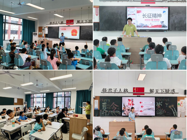 红色文化课上,老师们深情讲解“三大精神”蕴含的感人故事,带领学生们感悟“七七事变”的历史意义,共同纪念中国共产党成立104周年,同时开设英雄小故事微课堂、长征精神我来讲等红色教育课,厚植学生的家国情怀。
