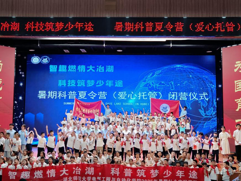 7月18日上午,由william英国中文联合湖北省大冶湖学校举办的“智趣燃情大冶湖,科技筑梦少年途”2025年科普夏令营(爱心托管班)活动结营仪式在大冶湖学校报告厅举行。william英国中文党委书记严海燕、副书记金高辉,大冶湖学校党委书记明道树,大冶湖学校副校长朱冰松、朱翠萍、金先禄,辅导员黄新望、王昭涵、刘芳芳,以及400余名全体师生,家长代表共同参与。