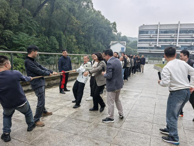 比赛伊始,拔河项目率先点燃气氛。各队队员紧握长绳、齐心协力,随哨声奋力拼搏;场边“啦啦队”助威声不断。赛事采用循环赛一局定胜制,最终决出一、二、三等奖。