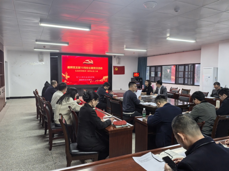 10月30日下午,电气学院教师党支部在产教融合中心会议室24341开展10月主题党日活动,本月活动主题为“弘扬爱国精神凝聚奋进力量”,会议由院教师党支部书记陈兮主持,全体教师党员及入党积极分子共同参加。