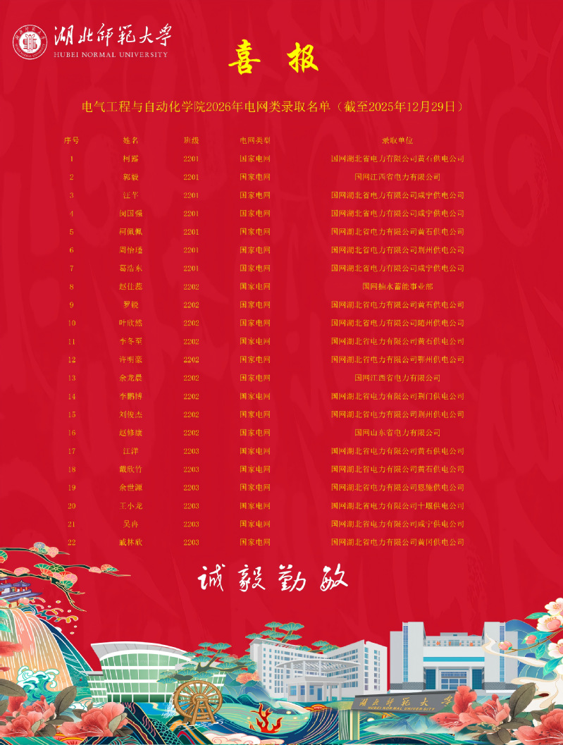 据悉,电网每年分三次开展高校毕业生招聘工作,招聘时间分别为当年12月及次年2月、3月,其中12月批次招聘主要面向电气类专业硕士及四年制本科生。本次招聘中,我院共有42名学生报名参与考试,最终22人成功录取,录用率高达52.38%,创下历史新高,充分体现了我院学子过硬的专业素养与综合竞争力。